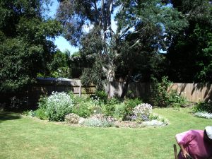 This patch of ground at the bottom of the garden has evolved slowly over the past few years. From a wholly grassed back garden – that way ‘cose both of us were working full time and it was easier just to mow than tend to ‘flowers’ – to a ‘pretty’ garden has taken a while mainly because of the water shortage and lack of finances 😦