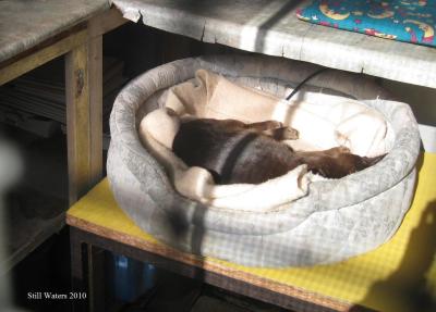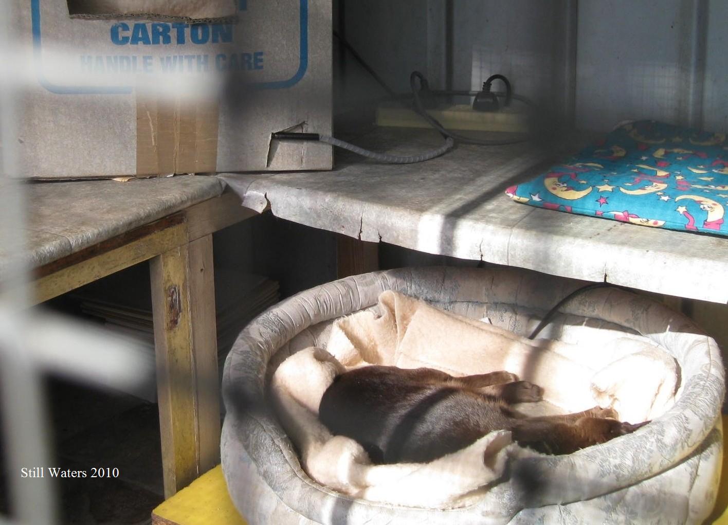 The big cardboard box is where she sleeps