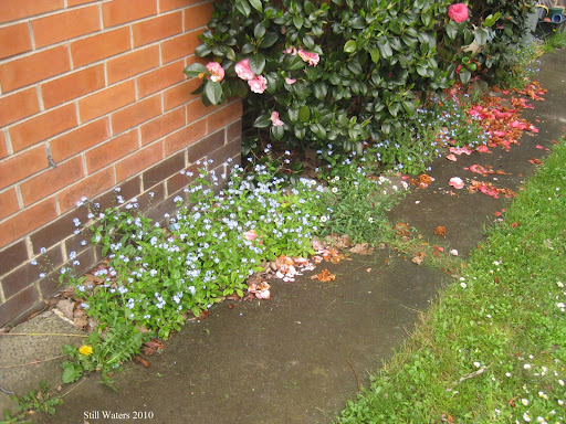 and swept the path of all the clippings plus the dropped Camelia flowers