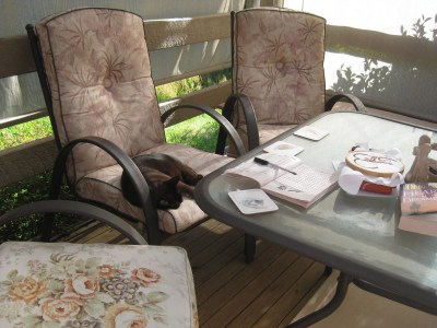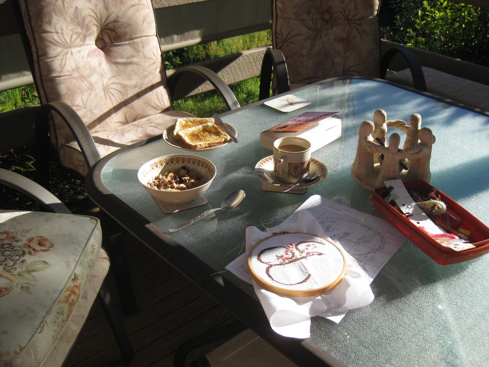 So I took my breakfast out on to the deck along with something to do