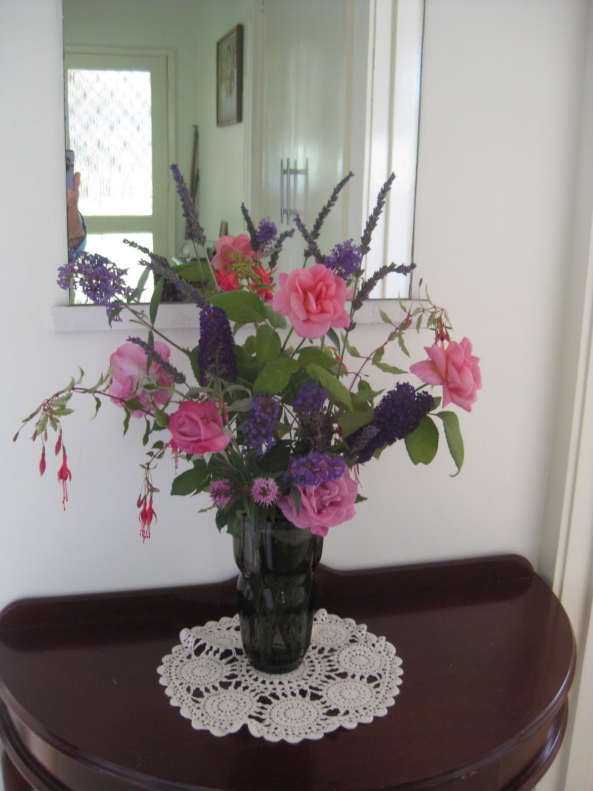 Now its (supposedly) high summer there isn’t a huge amount flowering in my garden however I did manage to find some flowers this morning to bring inside for the hall table.