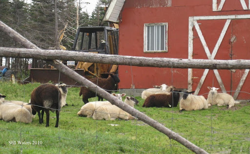 Its strange when you are travelling and you happen to come across a familar sight, but even though its similar its not the same. We were in Newfoundland last year and driving round a bend I suddenly yelled ‘stop’ There in what seemed a very small farm yard were some sheep – not many of them but sheep just the same.