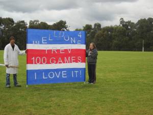 His favourite activity was to play – to play anything – especially ball games – especially the ball games many Australian boys love to play – namely Cricket and Aussie Rules Football. Footy began as a little one in the back garden – kick to kick with his Dad (son in law) and as soon as he was old enough with Auskick. Now he is a big strapping lad who still plays ball games – still gets out on the oval during the winter to play Aussie Rules with his team here in the eastern suburbs of Melbourne. This weekend just gone he passed a milestone in his ‘playing career’ – he played his 100th game.