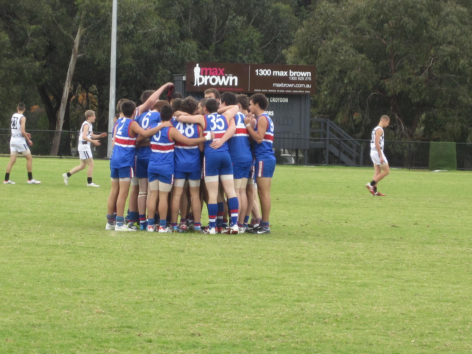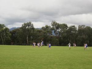 Grey skies didn’t deter them – the final score was a good one – next week might not be so easy – lots of training to be done in the mean time. What was great for our grandson was that his team gave him a Moment of Glory as they came off the ground.