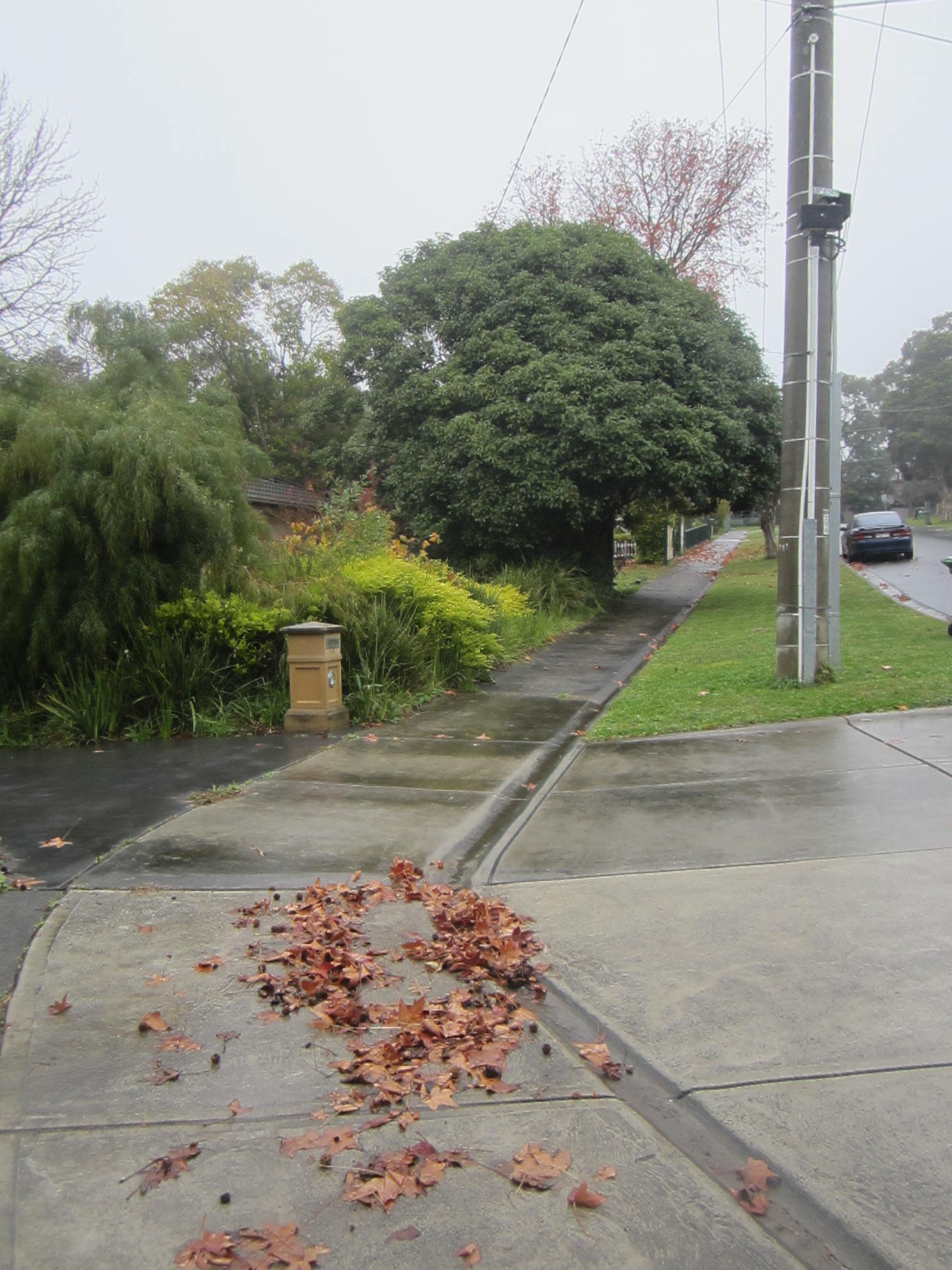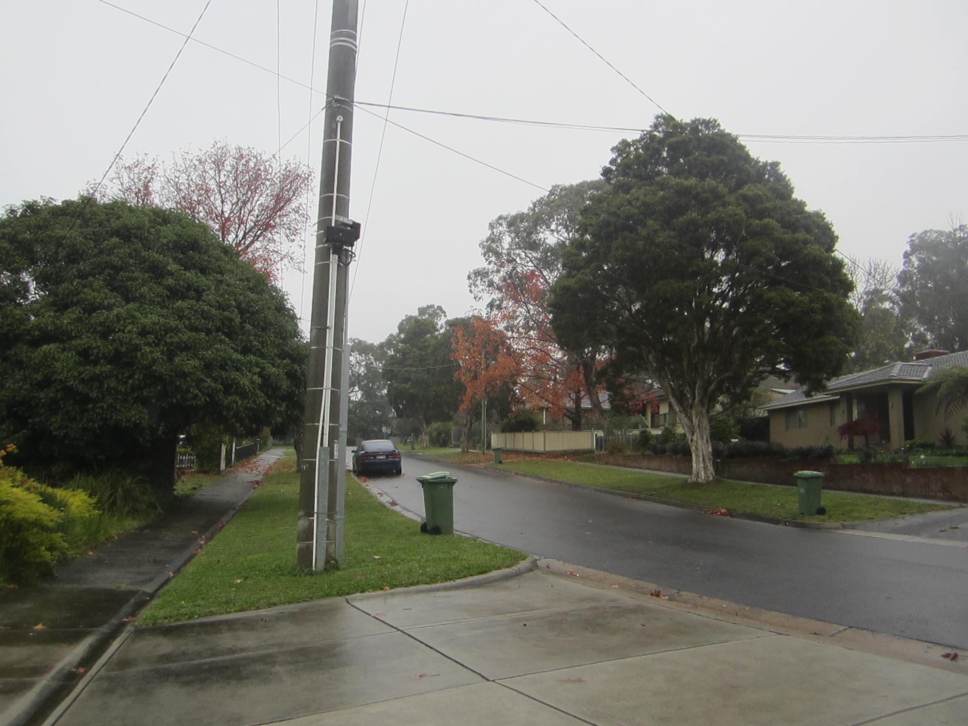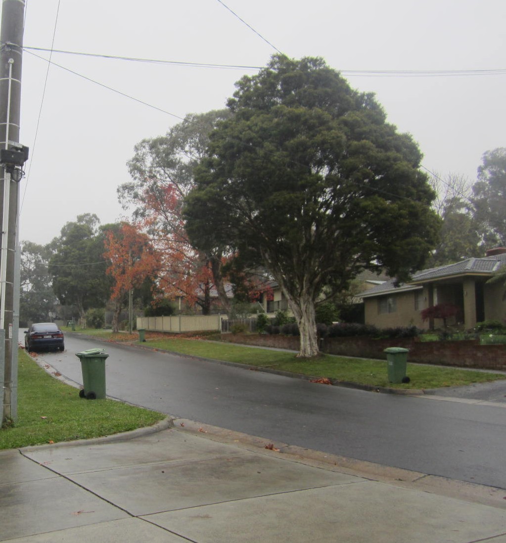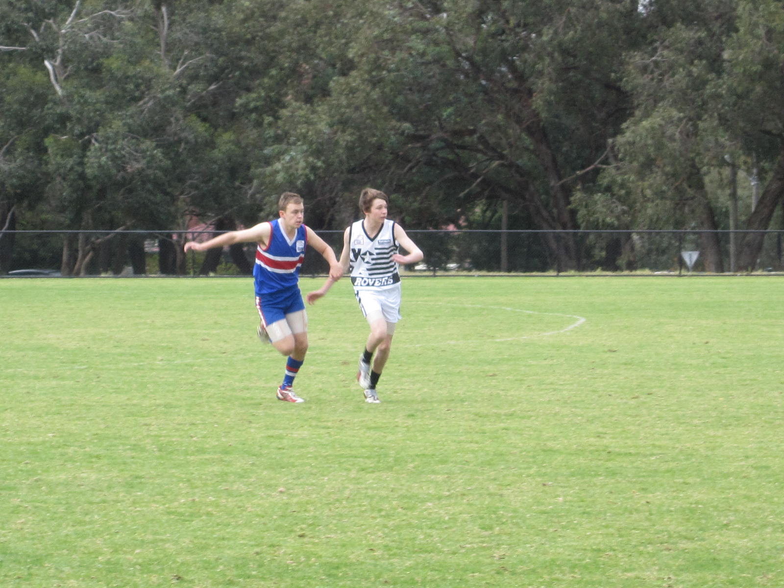 So with a ball up the game is started – ball up and not centre bounce because the ground was rather soggy and wet . Out our way trees and perimeter parking are one of the great things about most local football ovals – shade in the summer when its cricket thats played here and if you really need it warmth to watch the footy in the winter on a cold rainy day.  Plus the advantage of being able to toot the horn when a goal is scored lol This ground is within sight of those hills I keep talking about and if you look carefully the TV masts are visible just in the centre