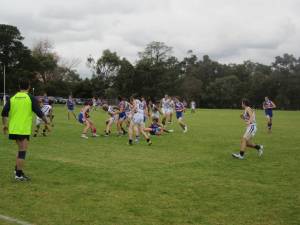 The Object of game is to score points by getting the ball through the goal posts – yes there are four posts and not two and there are points for whichever ones the ball goes through,  I don’t profess to know all the ins and outs of the game ‘cept there’s lots of running and jostling to get the ball and its a tense time when the play is in front of the goal and its a lonely time for the goal umpire when play is at the other end lol