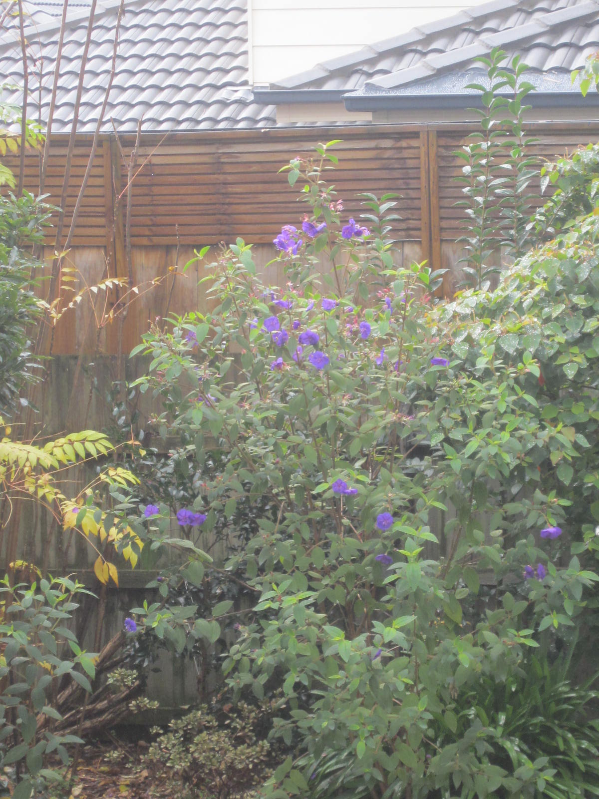 Take my little Lasiandra bush at the bottom of the garden – it died off during the drought so I pulled it out – or so I thought. Its shot back up again obviously from some roots that were left behind in the ground. Look at all those lovely purple flowers and the green velvety leaves bringing a touch of colour to the garden . I took this on a very wet rainy day last week – and as much as I loved what I saw and wanted a photo I will just say I was safe and dry about sixty foot away on our back deck lol