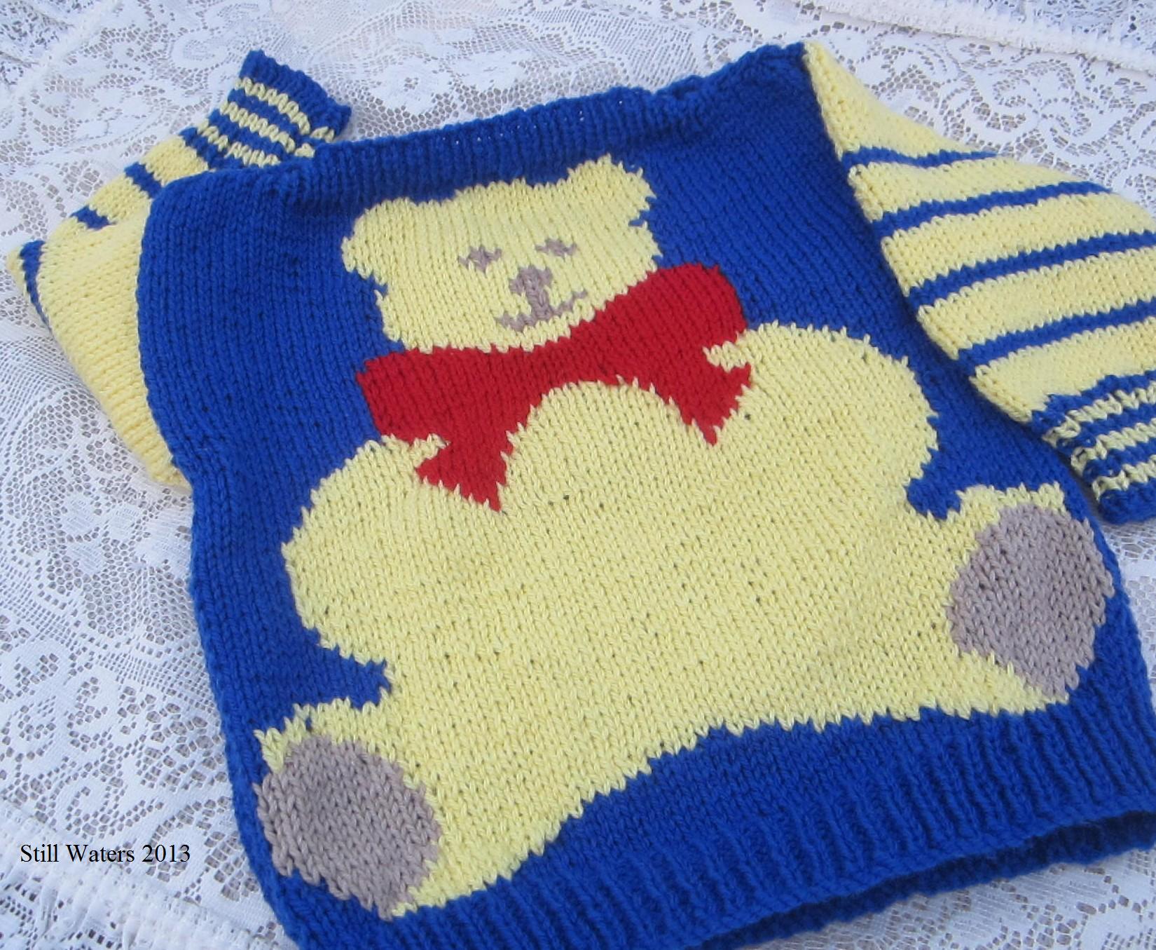 Mostly plain stocking stitch with an easy to follow graph for a ‘Big Ted’.