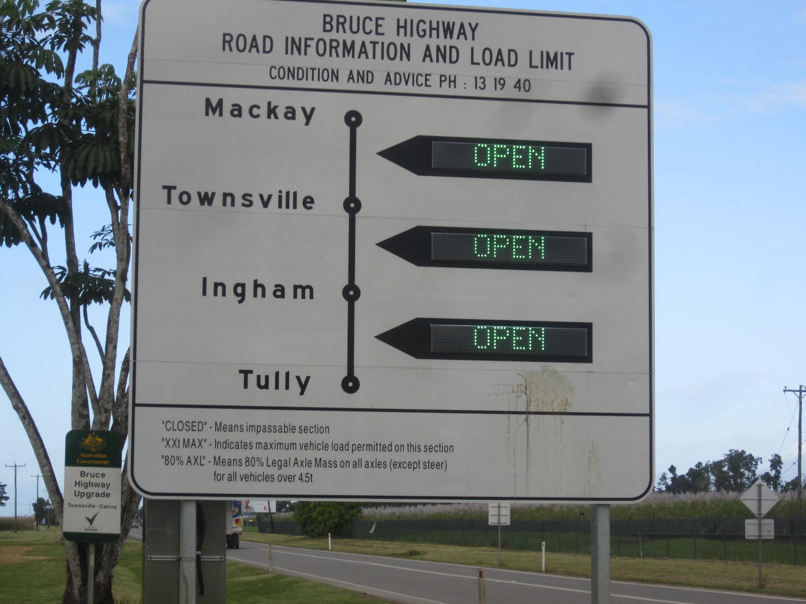 Then of course there are the important ones you don’t want to miss This is one of the wizz bang new digital road information signs we saw when driving south from Tully. Bowen is 2 hours north of Mackay and 2 hours south of Townsville