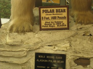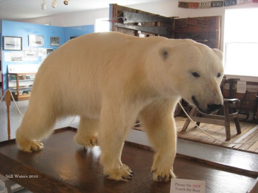 Another beauty lives in the Durrell Museum in Twillingate which is in the northeast of the province.  This stance really does give you an idea of being up close and personal with a Polar Bear. Look at the size of those claws!!