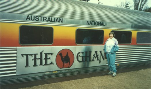 I have great memories of our time on The Ghan. Â I know we had fun – we couldn’t afford a sleeper so sat up all night and ate the food we carried onboard with us. Â Coach passengers only had access to a little kiosk, not the dining room. The passenger mix was just that – a mix of oldies and young ones and families with littlies. Â One young man in our carriage had a guitar and there was music and singing. Â Left Adelaide one morning – arrived in Alice Springs the next.