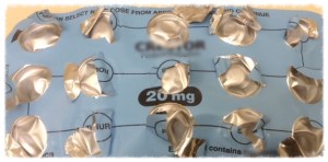 So like the good ‘rules abiding’ patient I am I did just that. Began with the take first tablet, then the next evening found the one for that day and continued that way to the end of the sheet. Don’t laugh but I found doing that a real nuisance. I’d been used to picking up the previous sheets and just pushing out a tablet any which way until the sheet was empty but the new way meant I had to turn the sheet over to check I was pushing the correct tablet out. It completely changed my routine lol