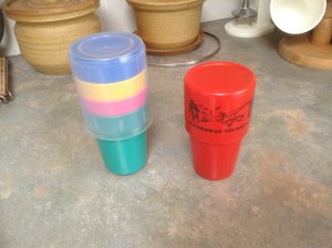 So what do you do when these emerge from the back of the cupboard? Four small child sized plastic beakers with another styled as a lid to hold them together. One set slightly larger than the other.