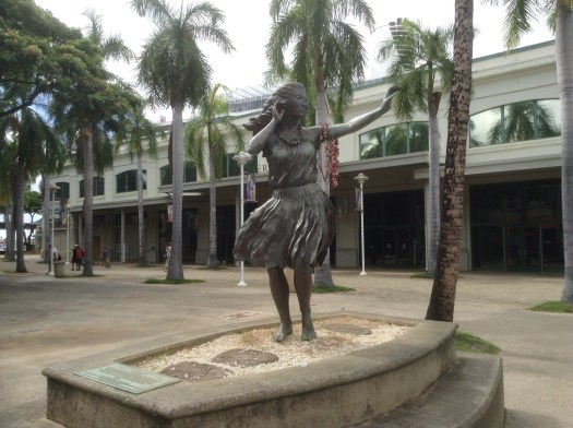 About five miles up the road from Kapiolani Park is the Aloha Tower, and that’s where I  managed to get a photo of another young woman.  Seemingly she represents  ‘Farewell to thee’ a goodbye song written by the later to be Queen Liliuokalani and stands there near the cruise ship terminal, her hips swaying hula style and looking a little sad, usually surrounded by travellers so last year was the first time I was able to get a ‘clear’ shot.