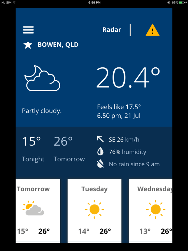 So I wrote that after a ‘run in’ with the office. I’m still ropable but coming back down to earth. I’m in good health, the sun is shining, it’such much warmer than at home, and…..I’ll get over it.