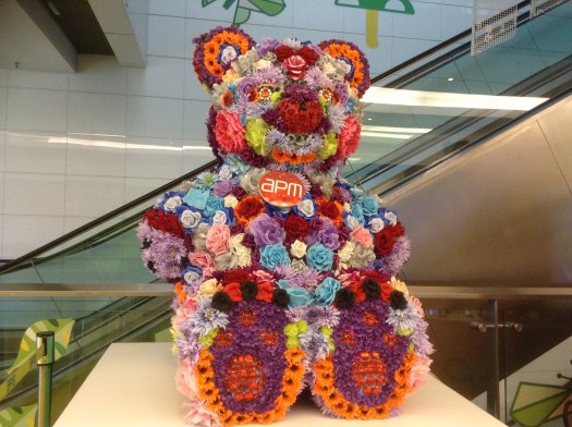 Beside the escalators in the big ‘open all hours’ apm shopping centre Hong Kong