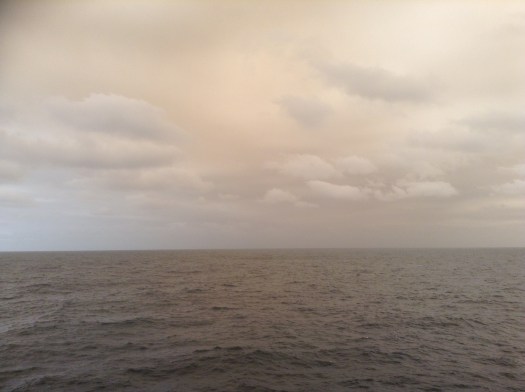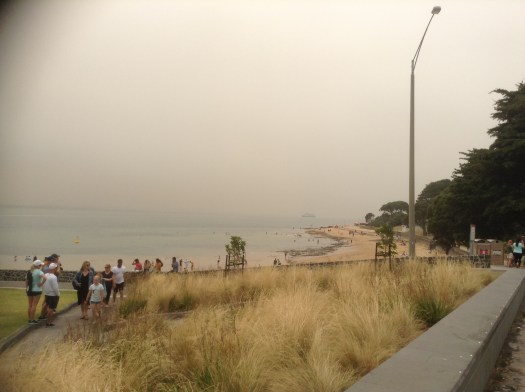 Limited visibility on the beach at sleepy Cowes on Philip Island last Friday – somewhere out there is a cruise ship at anchor.