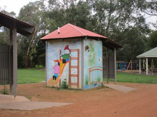 The murals on the toilet blocks have been repainted  recently – in a very simple child friendly but eyecatching design.  They looked quite lonely when I was there the other day 😒