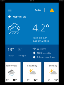 Thank goodness the gas heater was (finally) repaired because It’s back to tracky dacks and fleecy windcheaters weather!