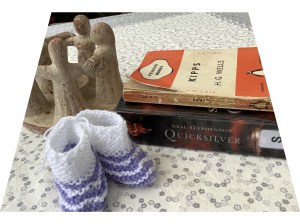 I’m getting towards the end of my reading challenge, polishing off 5 during September, (obviously that’s the reason for less knitting last month) and now have these two waiting in line. A very old 1946 copy of Kipps (H.G.Wells) found on the book table at Probus in February…….lol someone was obviously having a clear out 😊