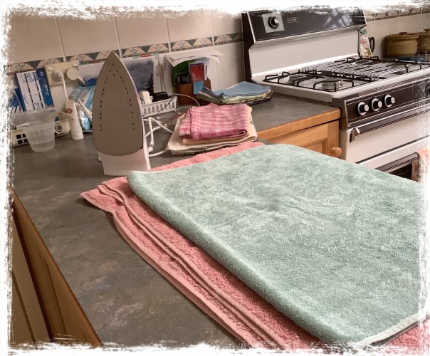 The Golfers mother always ironed on the table – using a thick blanket, the sheets she’d laundered that week with a very large piece of towelling on the top. Back then she ironed everything – including my F in Laws white cotton Y fronts!