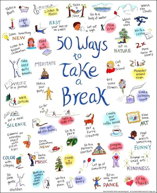 1. a large portion of these I can do without leaving home and they all sound good, which ever ones you pick to do be sure to report on them to us. AFTER your break