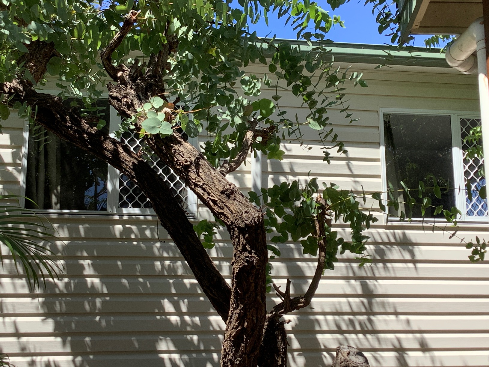 And as you can see, even though there are palms and what I think is a very cut back Silver Dollar Eucalyptus (E. cinerea or polyanthemos – the gardeners aren’t sure)