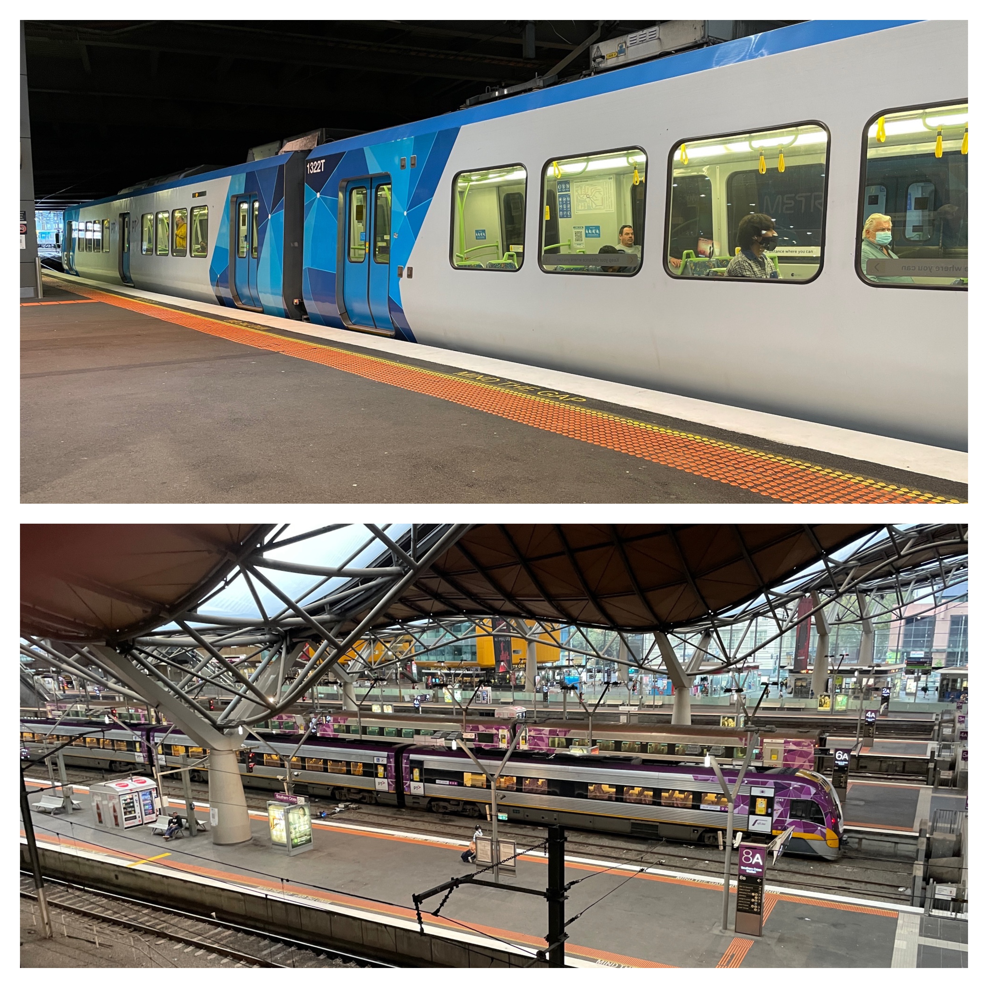 Smiles at seeing travellers on suburban lines in masks, I can’t remember seeing any on the country V/Line trains (or dedicated platforms) when I took the lower photo at (don’t make me say it) Southern Cross Station back in April. It will always be Spencer Street Station to me.