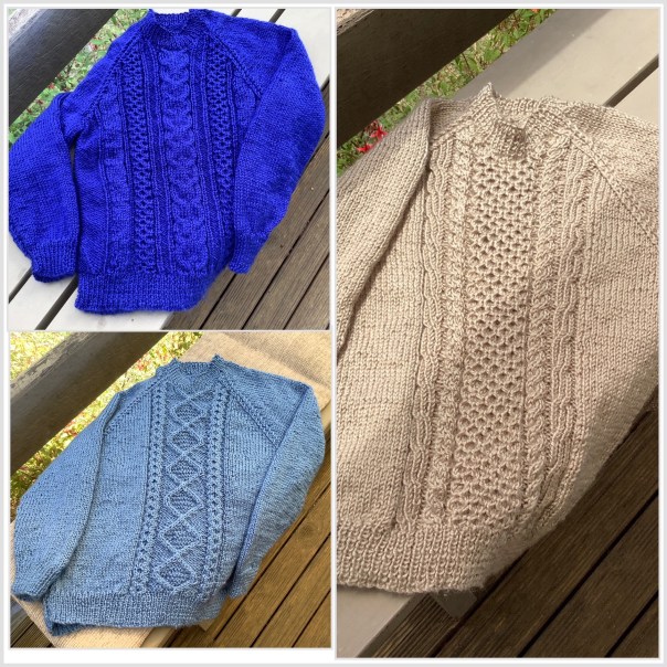 Lovely sweaters! You’re a great knitter. I haven’t done an adult jersey in years. It was the backs I found slightly tedious. Endless rows the same.