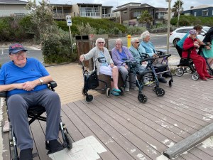 Lots of jokes about why they hadn’t worn their bathers – not one of them under 85 but they reckoned they still ‘had it’ and if it’d been a bit warmer they might have – how it had been a perfect day – bit cloudy in the morning but they’d seen yachts and sea gulls, walked along the board walk (but weren’t too happy about looking like ‘those old people you see who go to the beach and spend their time sitting on a bench staring out to sea’) – they agreed they’d had the best beach lunch of fish and chips and ‘fizzy lemonade’ and to top it all off the sun finally made an appearance just before they left to come home