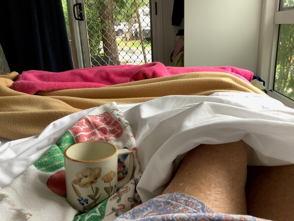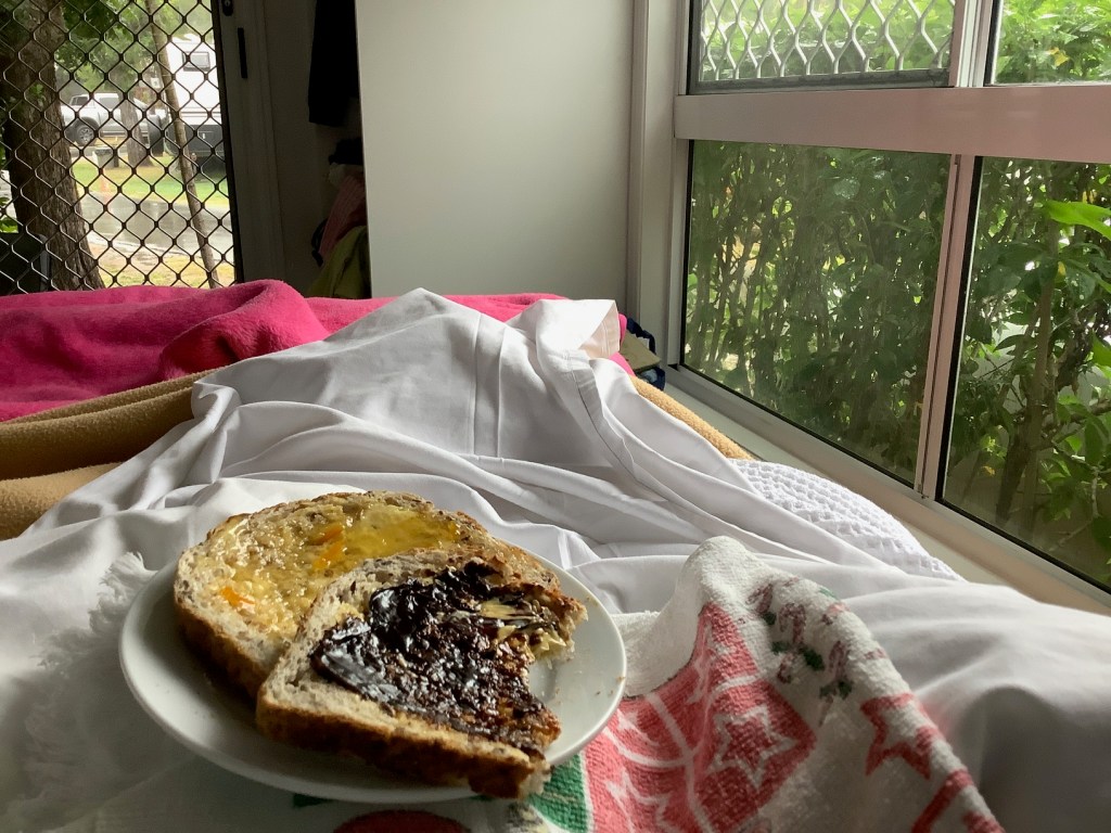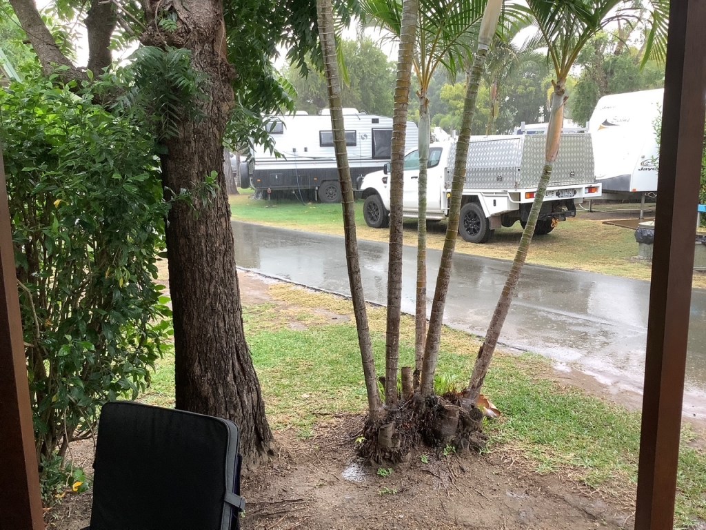 So far we’ve just been taking things slowly, enjoying the change of pace and scenery, it’s definitely warmer in the daytime than at home – there has been rain (lots of it) but maybe not as much as at home (enough to stop a certain person from golfing on a couple of days though ) – the warm nights from last week have disappeared for a while, there’s been a rather strong cool southerly blowing (Blowin’ Bowen living up to its nickname) so the overnight tonight (and tomorrow) has dropped to 9c/48f – there’s a blanket on the bed and there might even be a sighting of a hot water bottle later this evening 😊