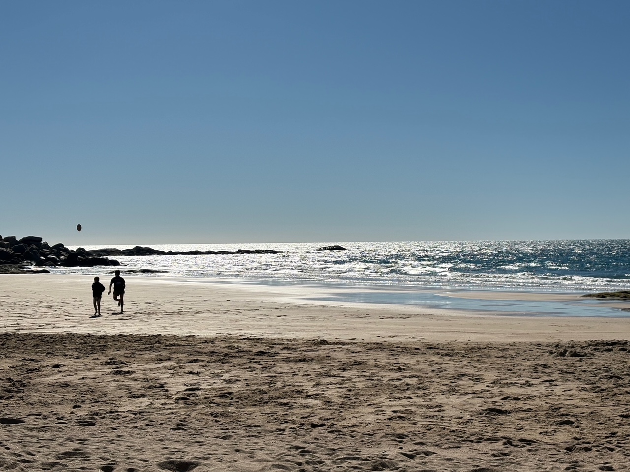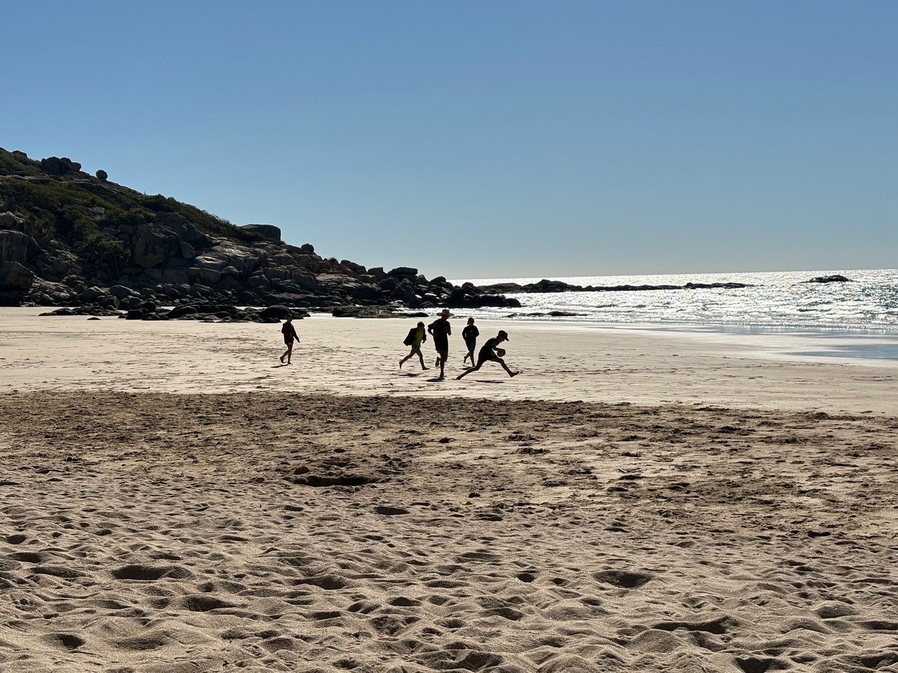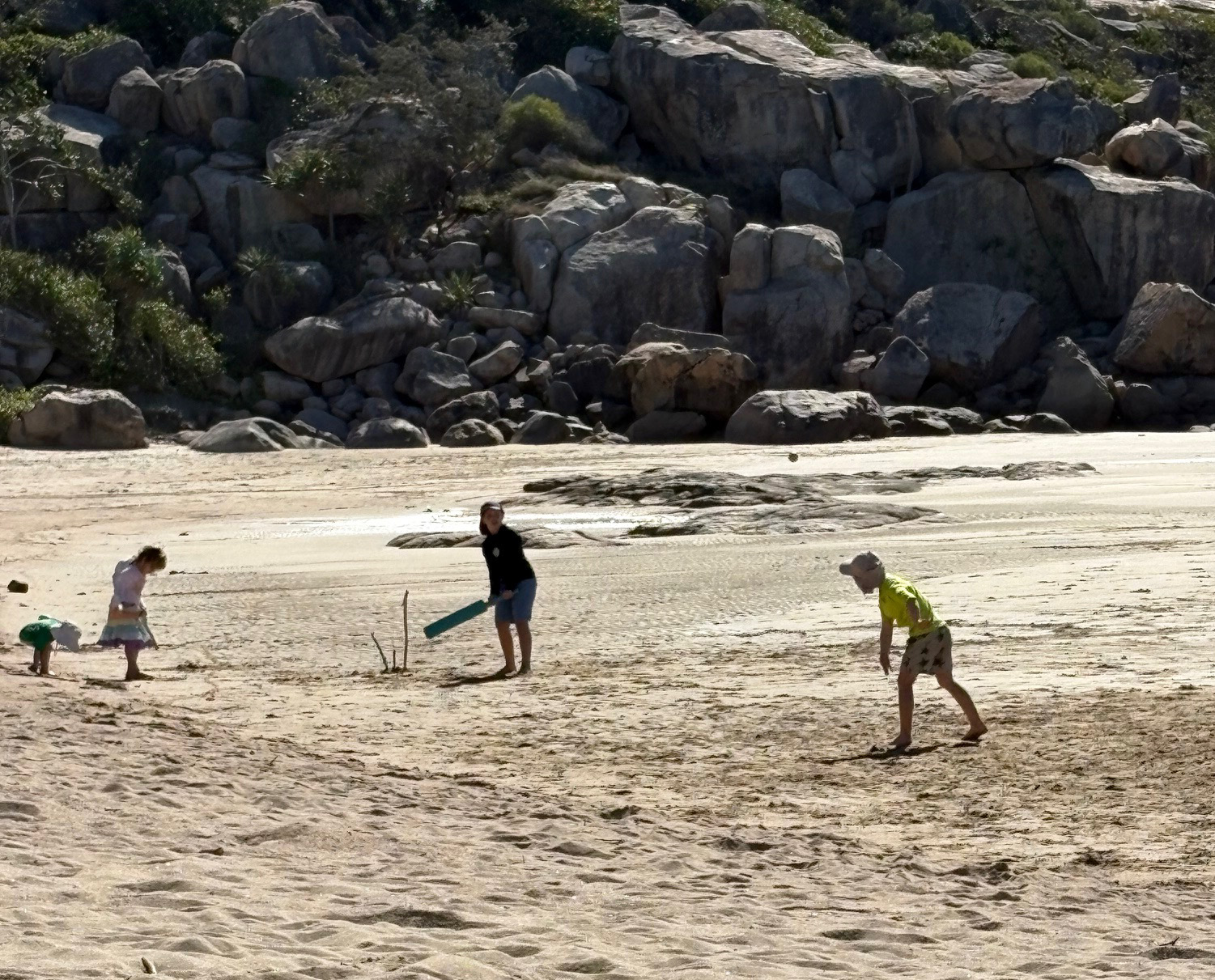 Slightly bigger kids enjoying a game of beach cricket…..
