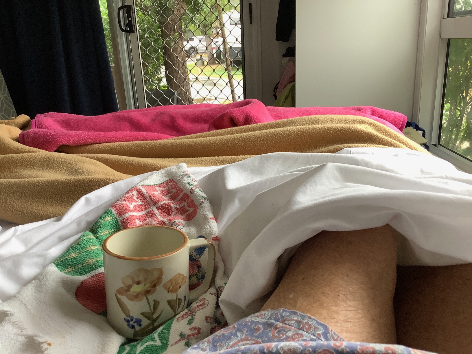 So far we’ve just been taking things slowly, enjoying the change of pace and scenery, it’s definitely warmer in the daytime than at home – there has been rain (lots of it) but maybe not as much as at home (enough to stop a certain person from golfing on a couple of days though ) – the warm nights from last week have disappeared for a while, there’s been a rather strong cool southerly blowing (Blowin’ Bowen living up to its nickname) so the overnight tonight (and tomorrow) has dropped to 9c/48f – there’s a blanket on the bed and there might even be a sighting of a hot water bottle later this evening 😊