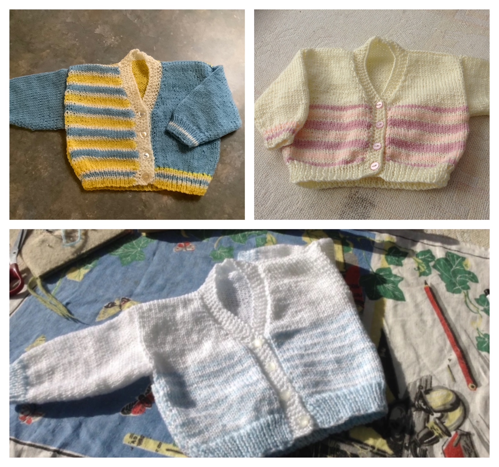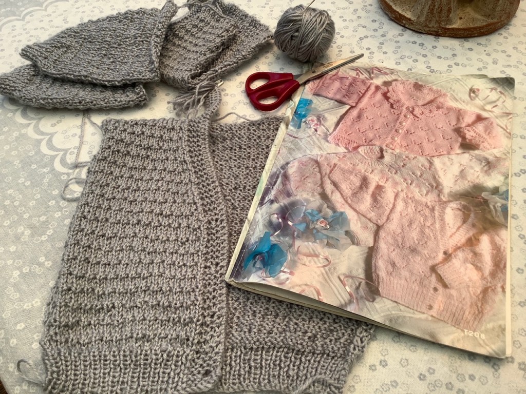 Another good thing to come out of all this sitting around keeping him company is I’ve used up several lots of excess wool ….Voila..…36/20x20cm knitted squares…..with (as requested) long ends left for sewing together to make a large sized cot blanket. Win/Win situation!