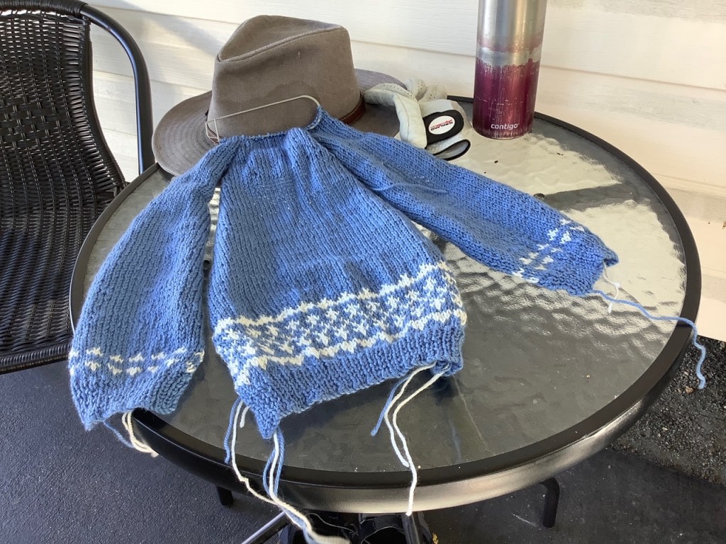 And what could be less stressful (and oh so quick & easy to knit) than these little *left hand blue* ones that I call ‘ me do its’