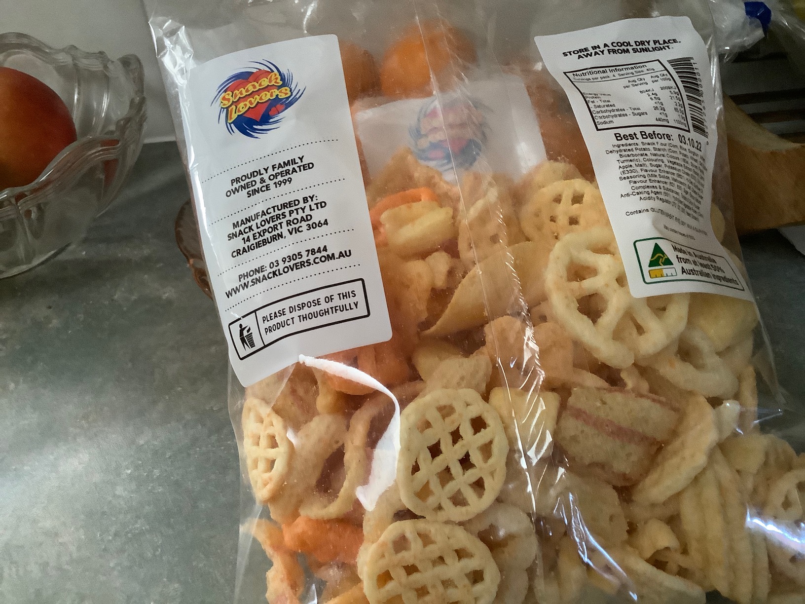 Now that did turn out good – economical, what’s in the cupboard style, certainly not glossy cook book style. As well as a small sliced chicken breast it included onions, the last of a packet of frozen mixed veg, also same of frozen peas and corn, some McKenzie’s dried soup mix, potatoes, broccoli stems, potato stock from the freezer mixed with chicken stock powder plus several carrots. After cooking I gave it a little whizz with Bamix using the chopping blade to ‘break up and circulate’ the chicken