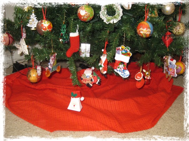 There’s not so much decorating these days – the red ornamented little tree comes out now and again, so do the little Santas (of sentimental value certainly not monetary) collected from various places round he world. As an aside these are Santa Claus not the Father Christmas I knew as a child- http://www.differencebetween.info/difference-between-santa-claus-and-father-christmas