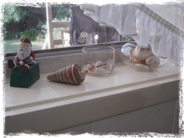 Some years the colour RED seems to appear in small doses like on this funny little Santa who is actually a (never used) wine bottle stopper who makes the occasional appearance on the window sill.