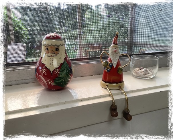 And last Christmas (2020) when life was still traumatic, our sole contribution to the festive season was the Roly Poly Santa from Ketchikan Alaska and the Long legged Santa from Calgary Canada