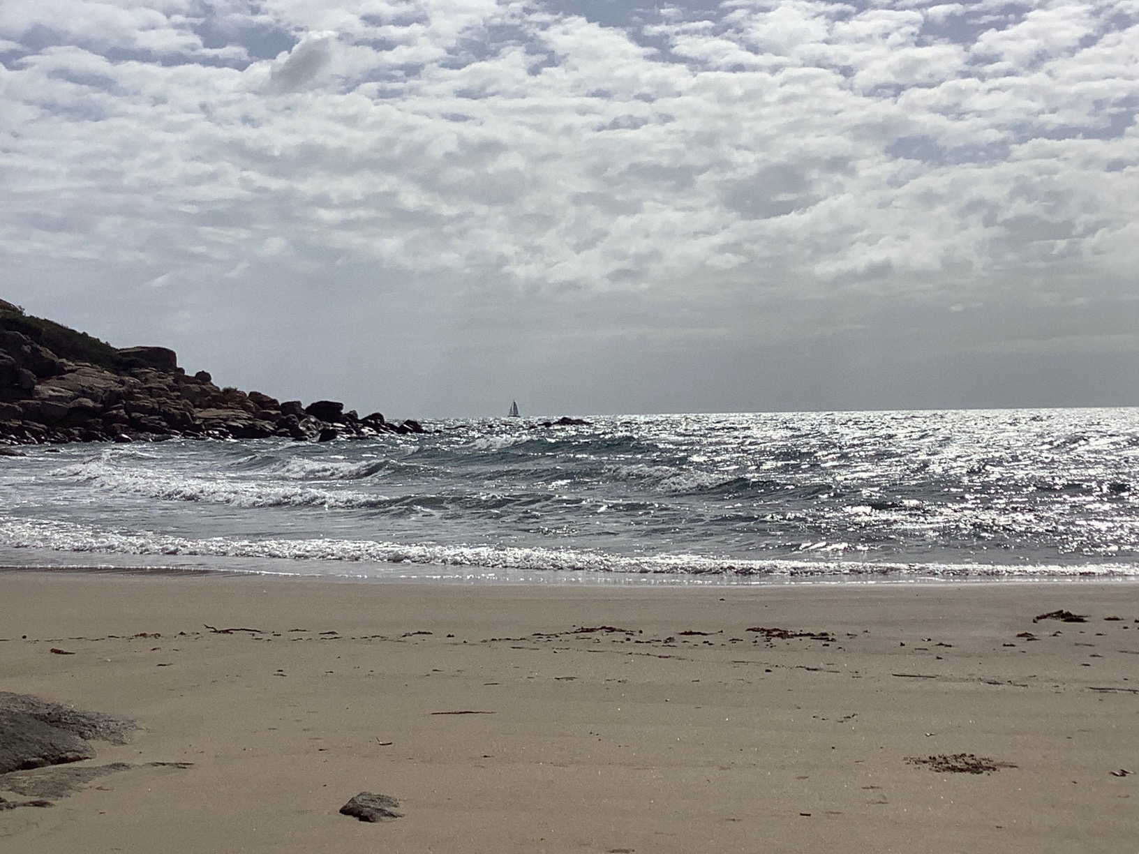 The sun doesn’t always shine here first thing in the morning We’ve had a few cool cloudy very windy mornings recently (like this one below) ones where I’ve popped down to Rose Bay on the off chance it might move on early but no joy (or should I say no time sitting reading by the sea) Only thing to be seen there was a tiny bit of sun shining somewhere up above which highlighted the choppy seas and a lone yachtsman moving along in the distance.