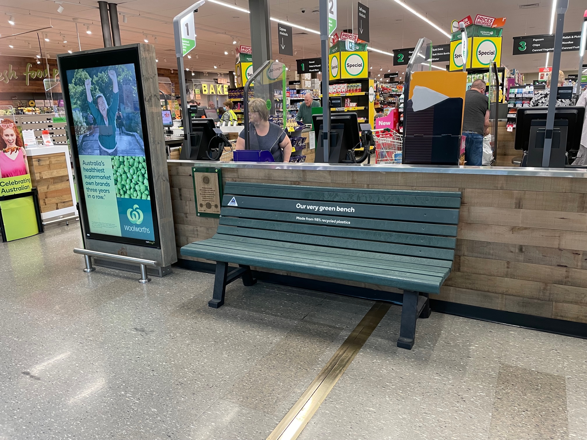 A wet day in Main Street Croydon – the whole street scape has now been ‘redesigned’. So these green circular seats have been removed Also the green benches on the other side of the street