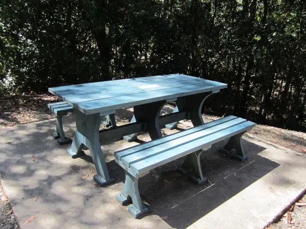 Two different styles of the bench this time – the simple one above and this one with formed back and small table structure in front. Perfect place for your cool drink while taking in the view
