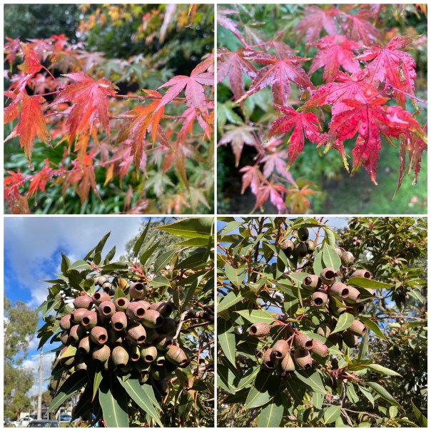 It might be my imagination but everything seems to be a bit different this winter. The cold is colder, the rain more constant, the leaves on my little Japanese Maple seem to be redder, plus the nuts on the Corymbia at the library (see HERE) are definitely larger