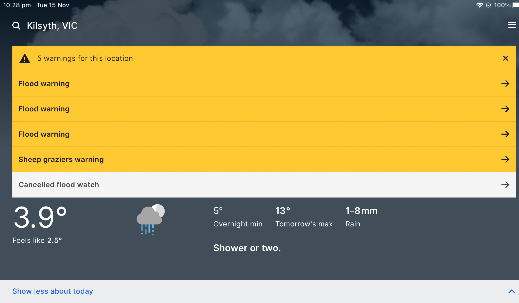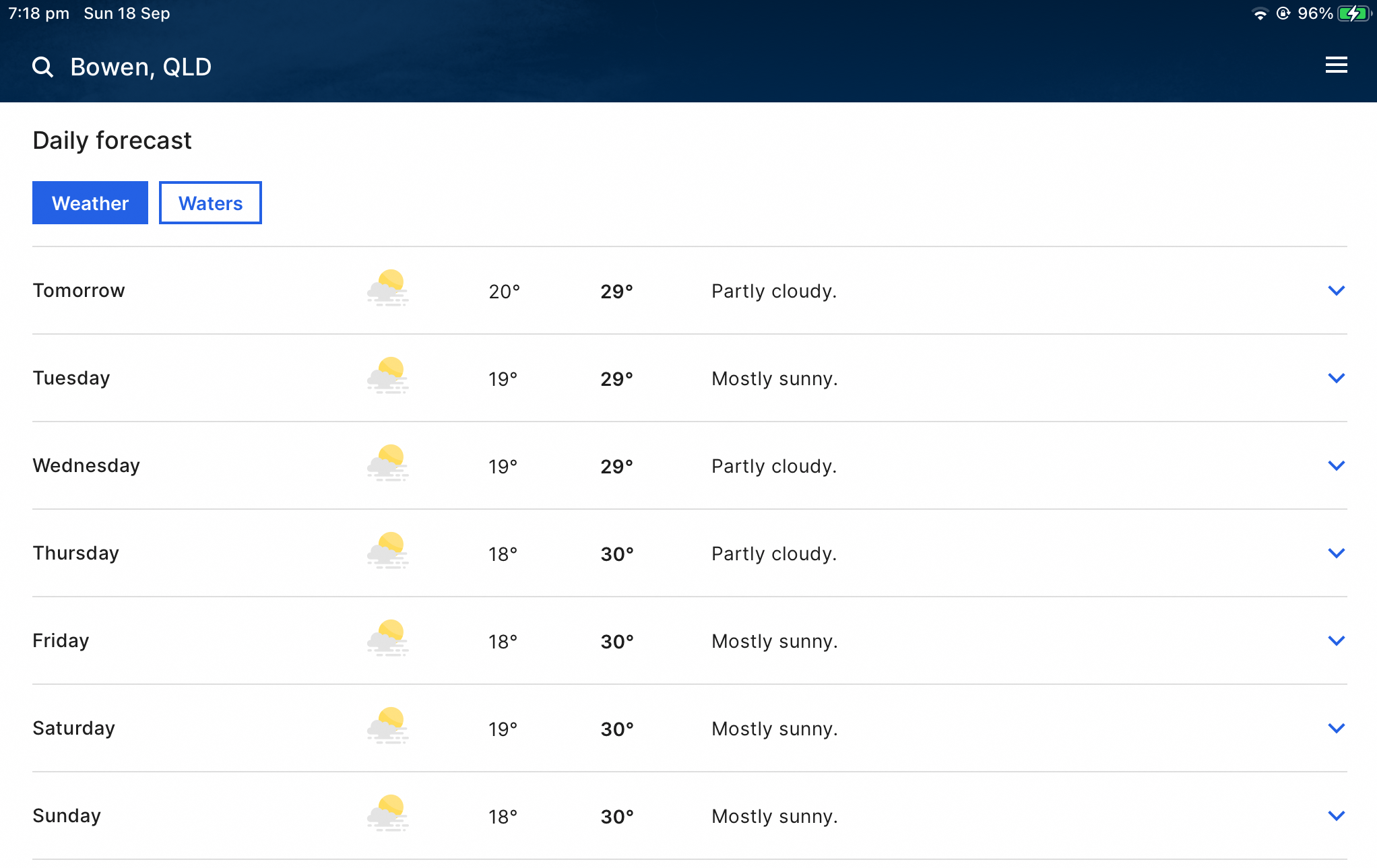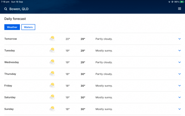 Temps up there are still high…..they haven’t changed, the daytime forecasts have consistently been 30° or higher – with higher night temps than we complained about. Courtesy of our third visit from La Niña, like all the eastern states they’ve also had more than their usual amount of rain