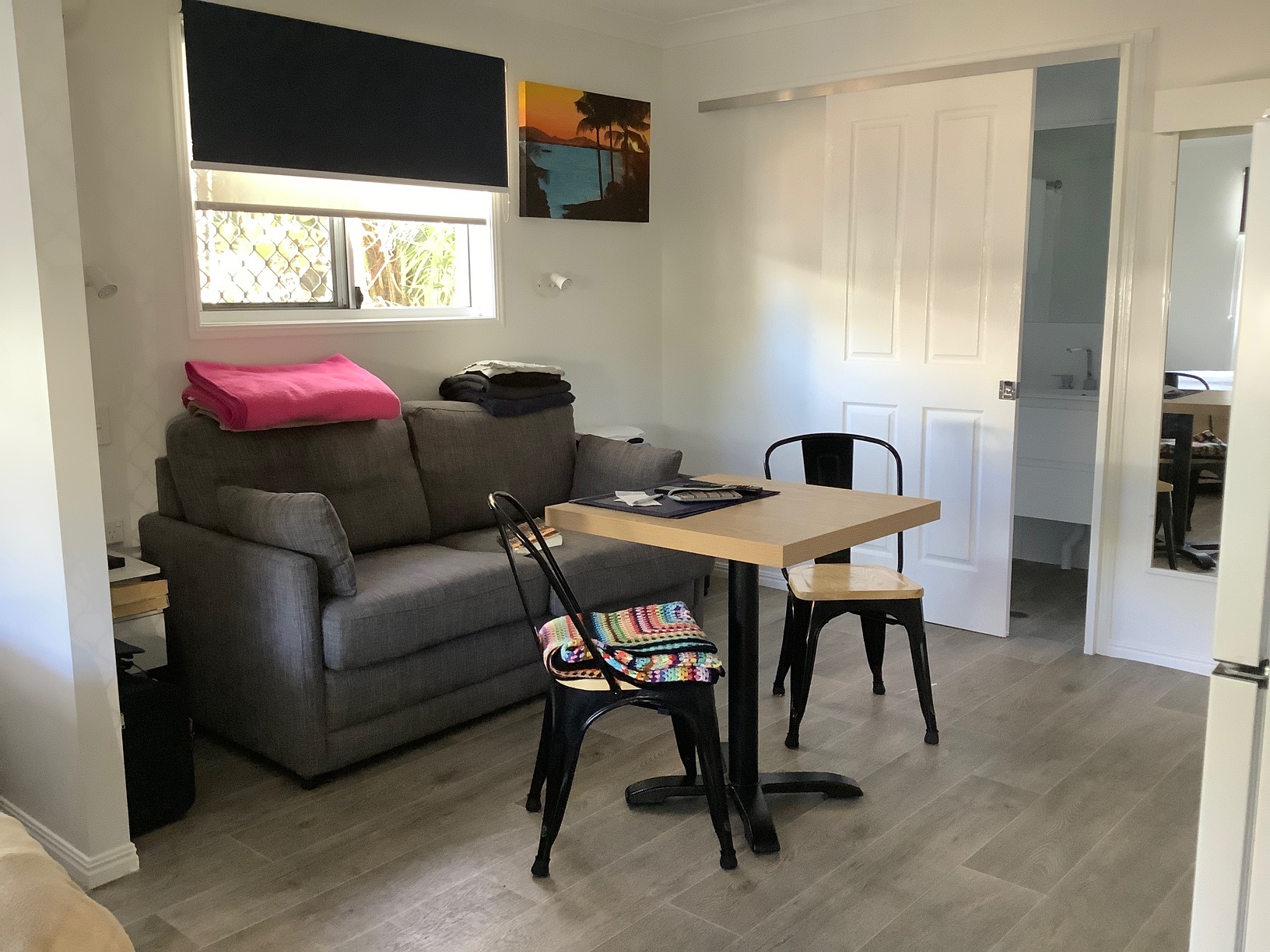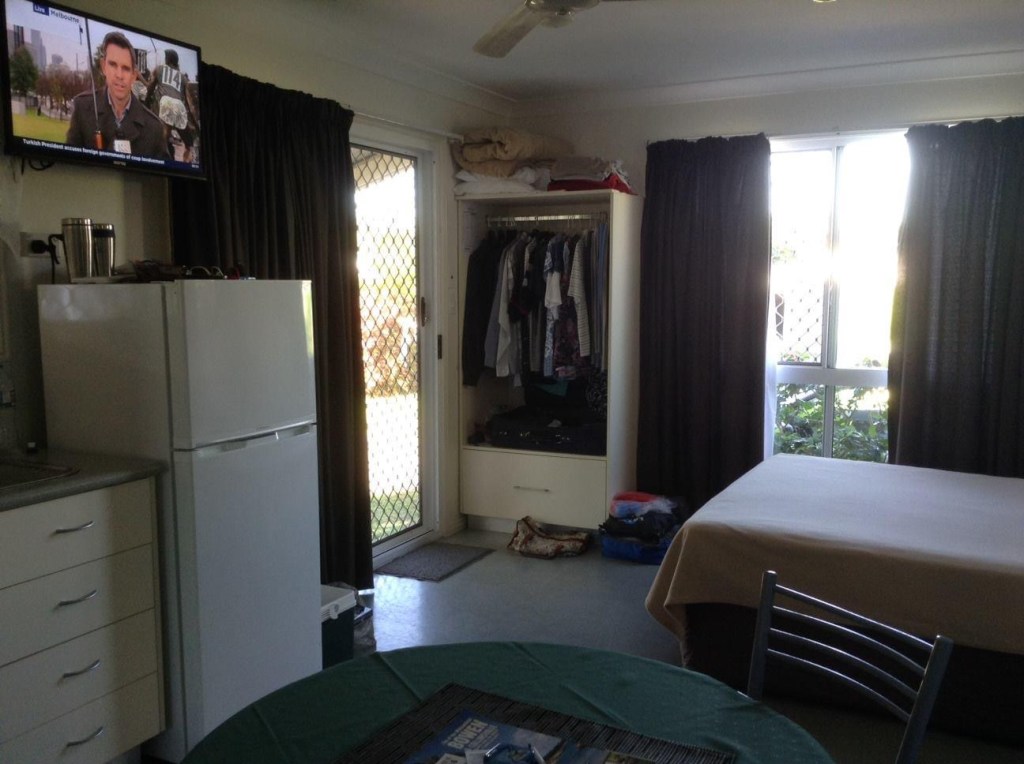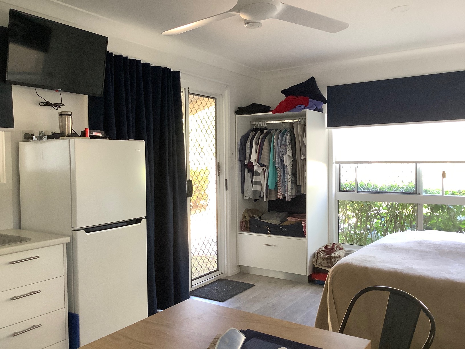 When we first started coming up (2008) the cabins were only a few years old – 4* luxury compared to others on the road – well maintained but starting to look a little tired the new owners (4 yrs now) had them ‘renovated’ over the past low season – not redesigned… brand new fixtures and fittings in the same layout as before….with just one difference- the window curtains were replaced with Holland/Roller blinds. Two sorts – one privacy (see out not in….unless the lights on) the other a heavier blackout one. Nice clean lines, just not my favourite window covering…..I find them a PITA nuisance Get a breeze and it’s clatter bang against the window frame…..try sleeping with that going on….nah not possible. Try lifting them up or getting your hand round the side in the middle of the night to close windows……bl*** awkward in the dark. Result…..some mornings (because there’s never a time in Bowen when there is no breeze) a tired annoyed cranky Catherine!
