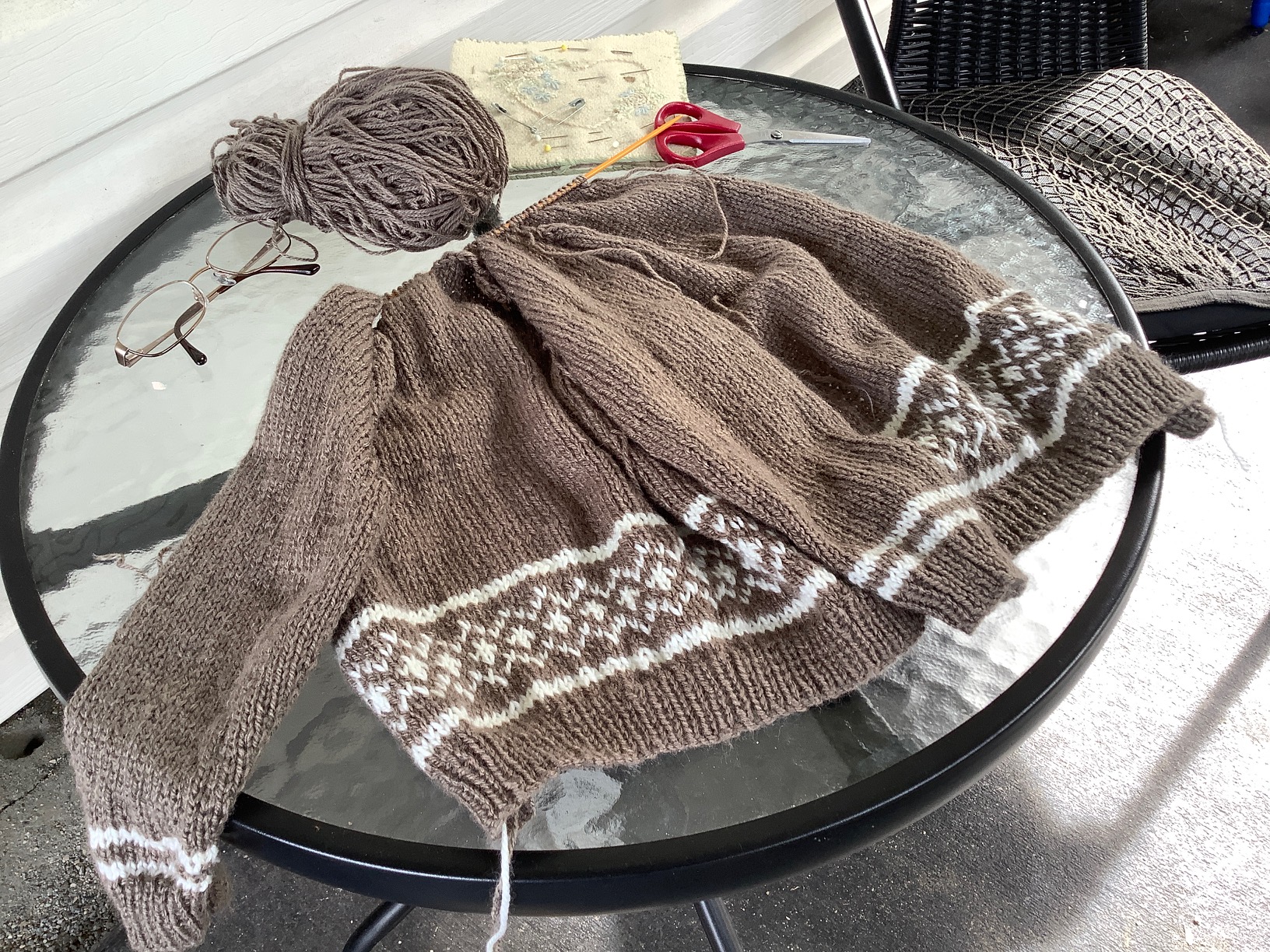 Guess who didn’t weigh and divide her gifted yarn? On the premise that if I could get one set out of half I could get another.